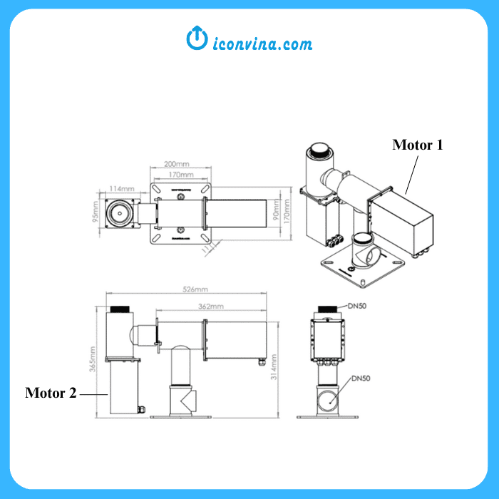 The 2D FINGER/FAN Robotic nozzle is designed to enhance the functionality of 1D multidirectional nozzles by supporting the mounting of lights or other equipment up to 5kg without compromising movement. This advanced motor replaces traditional stepper motors used in 1D, 2D, and 3D applications, offering improved performance and versatility.